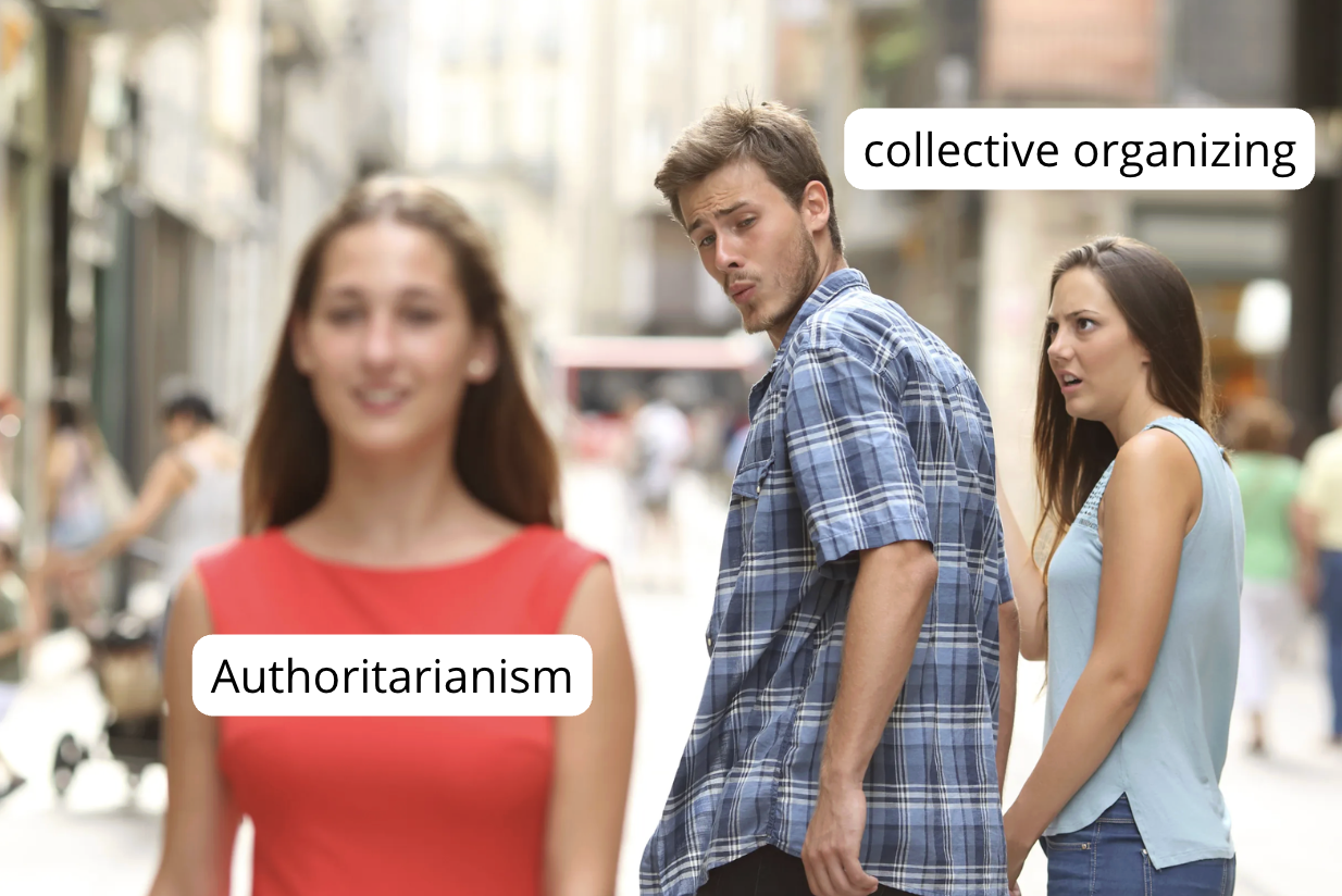 Community organizing rebuilds collective capacity to processsuffering and resistance. Mutual aid networks provide material support while modeling solidarity. Tenant unions fight housing precarity. Worker centers organize precarious labor. 1These create alternative institutions allowing people to understand suffering as shared and structural rather than individual and moral. They provide concrete experience of collective power, countering atomization that makes subjects vulnerable to authoritarian capture.